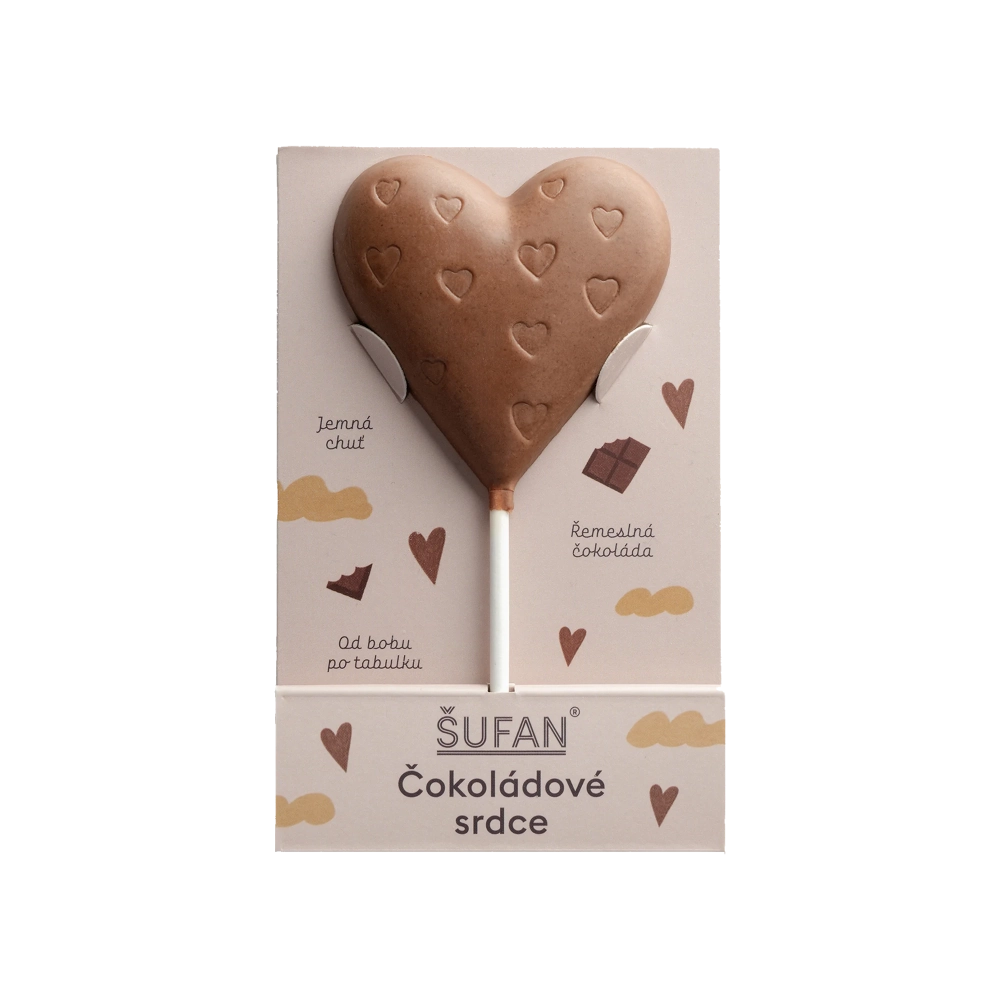 Šufan Čokoládové srdce z mléčné čokolády 27 gSkladem 2 ks89 Kč/ ks79 Kč bez DPH
