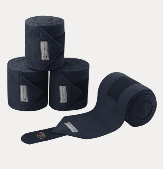 Vysoce kvalitní fleecové bandáže vyrobené z 380 g/m². Fleece se nežmolkovatí a je vysoce měkký a pohodlný. Délka bandáží je 300 cm a šířka 13 cm. Bandáže jsou zdobeny malou kovovou destičkou v růžovo zlaté barvě na které je vyryté logo Waldhausen. Skvěle ladí k ostatním produktům Modern Rosé.